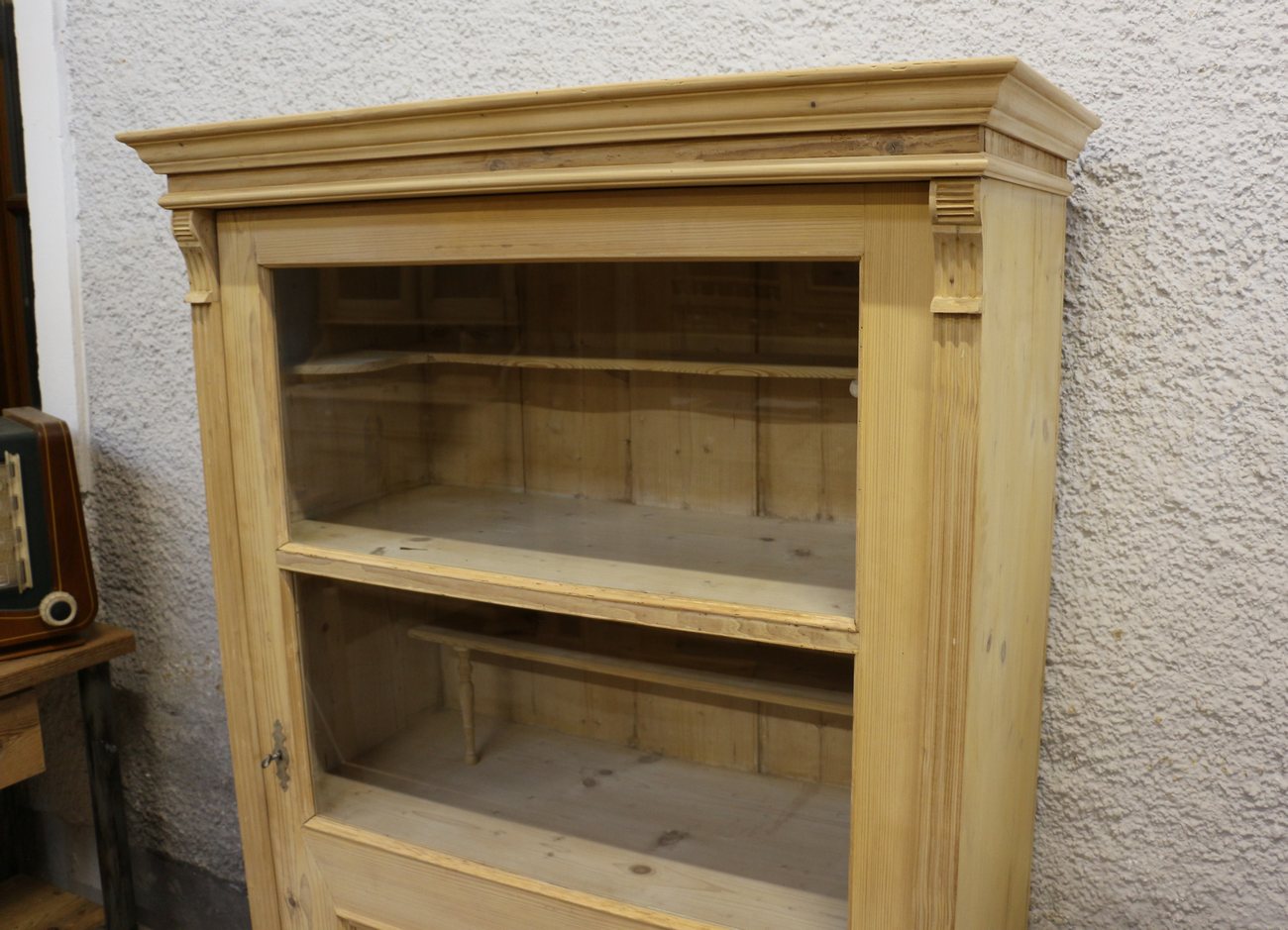 Eleganter Vitrinenschrank aus Massivholz, Original, Bauernmöbel, restauriert ohne Wachs, mit Fächern. Perfekt zur Präsentation von Dekoration oder Geschirr.