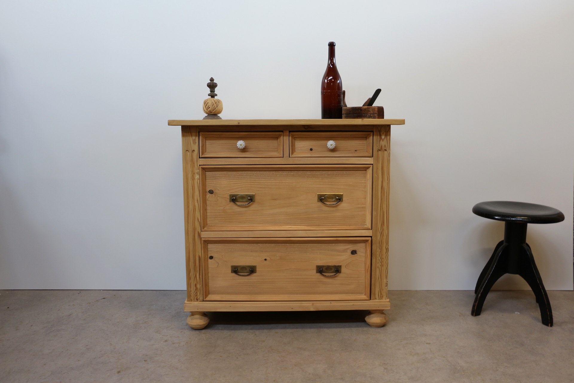 ✔ Beschläge: Altmessing + Porzellanknöpfe