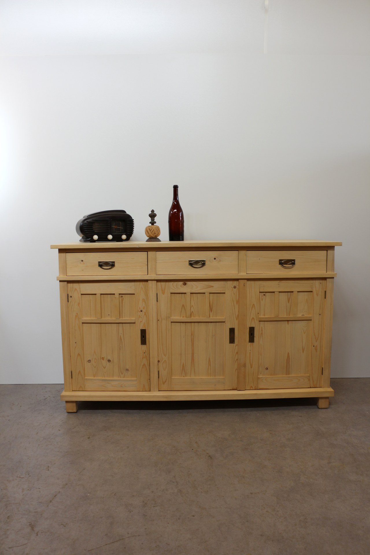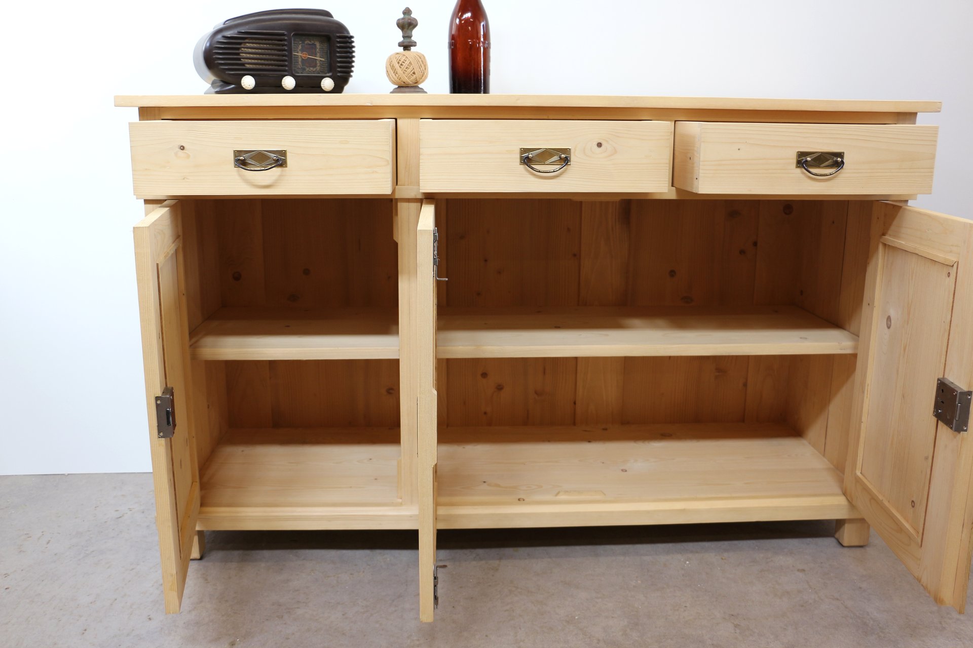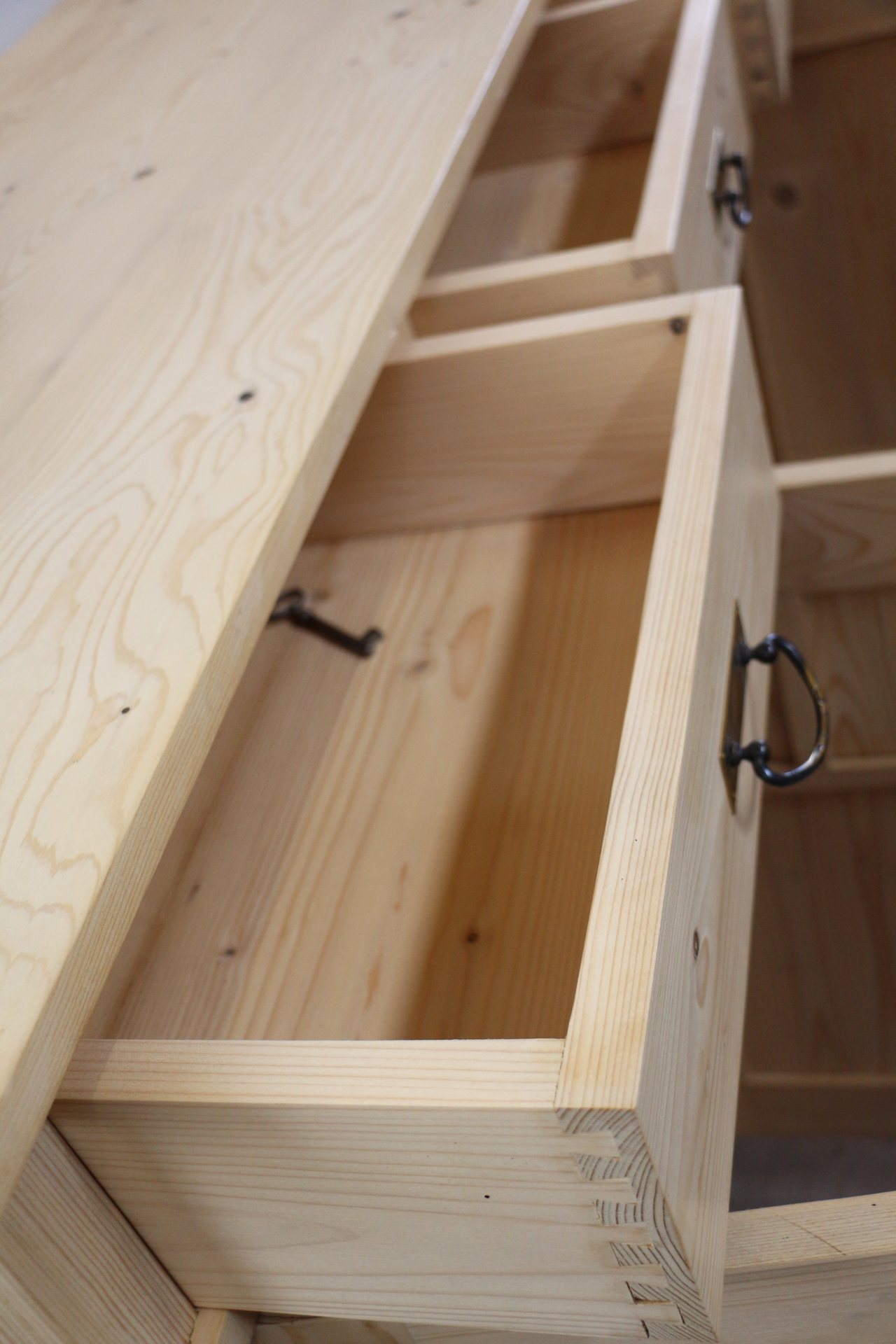 Gefertigt aus starkem Massivholz mit gezinkten Schubladen und stilvollen Metallbeschlägen.