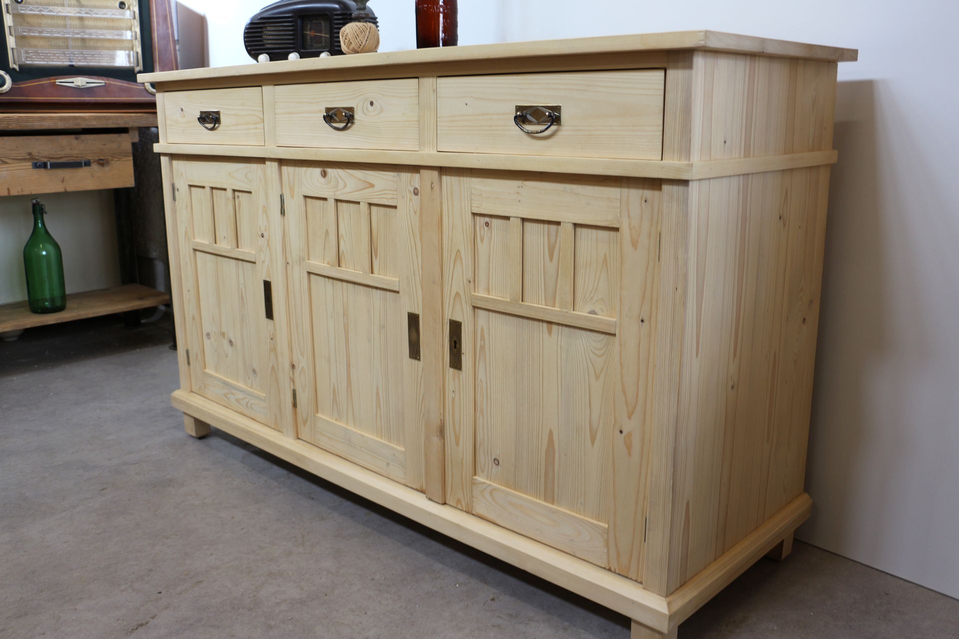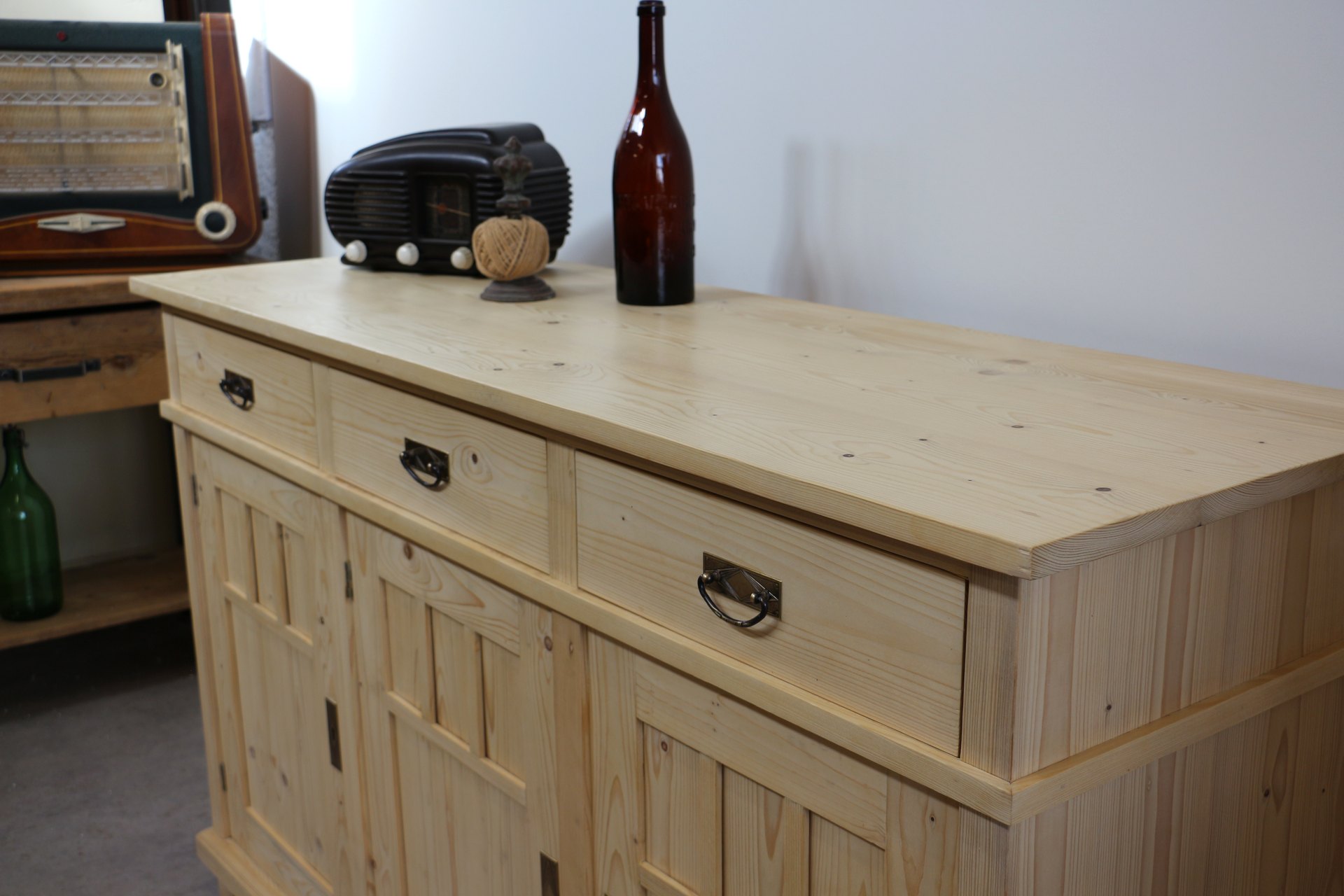 Hochwertige Jugendstil Kommode aus massivem Fichtenholz, neu gefertigt als Nachbau nach traditionellen Tischlertechniken.